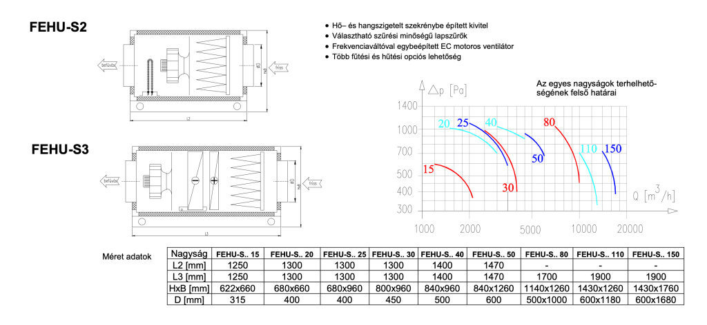 • Frekvenciaváltóval egybeépített EC motoros ventilátor